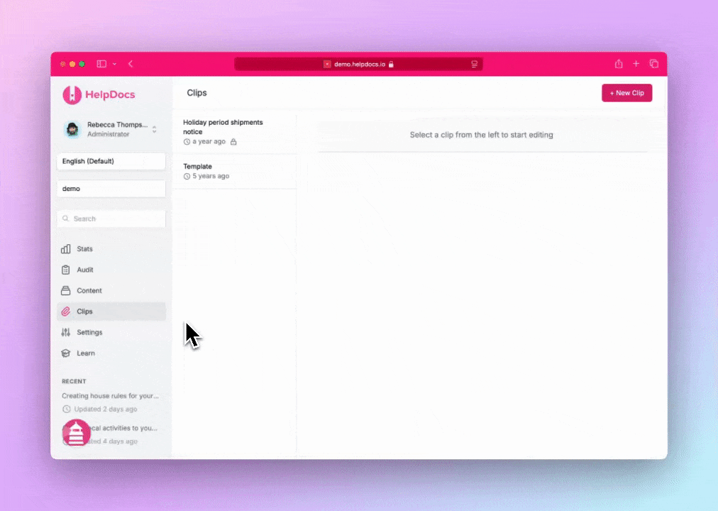 - Dive into detailed analytics to see exactly where each Clip is used across your docs.