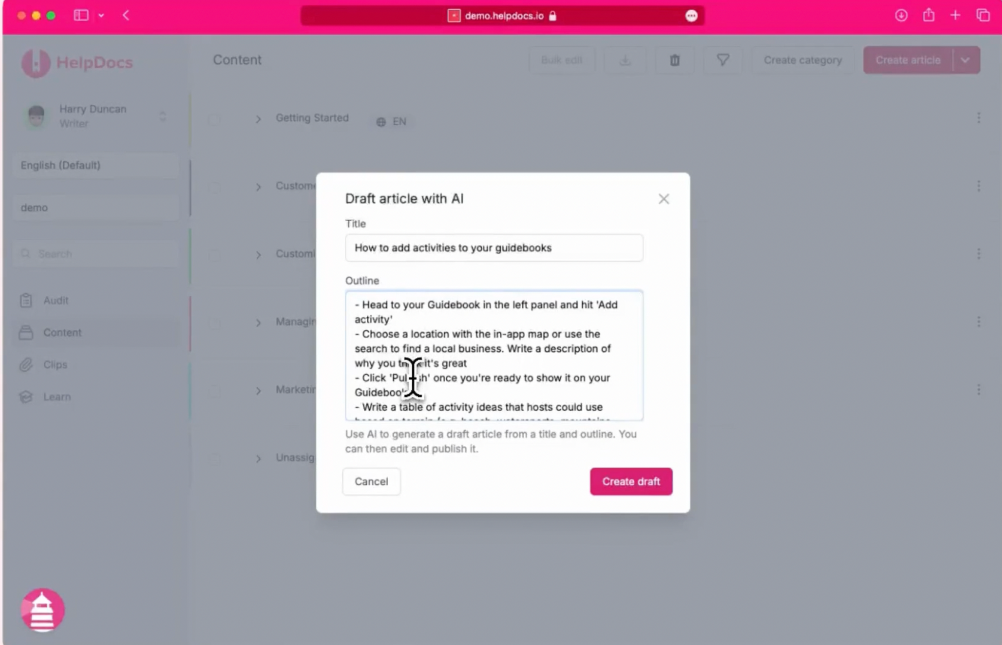 About: HelpDocs (us!) is a self-service Knowledge Base platform that leverages AI to help businesses create and manage high-quality documentation. HelpDocs AI features allow for rapid content drafting, rewriting, section additions, and metadata generation, making documentation maintenance more seamless.