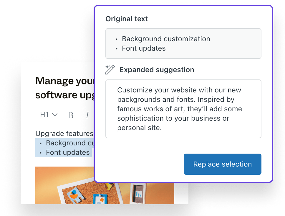 - Faster Content Creation: AI-powered tools eliminate the blank page problem by generating drafts based on an initial idea or outline. This allows teams to quickly refine and publish high-quality content without spending hours starting from scratch.