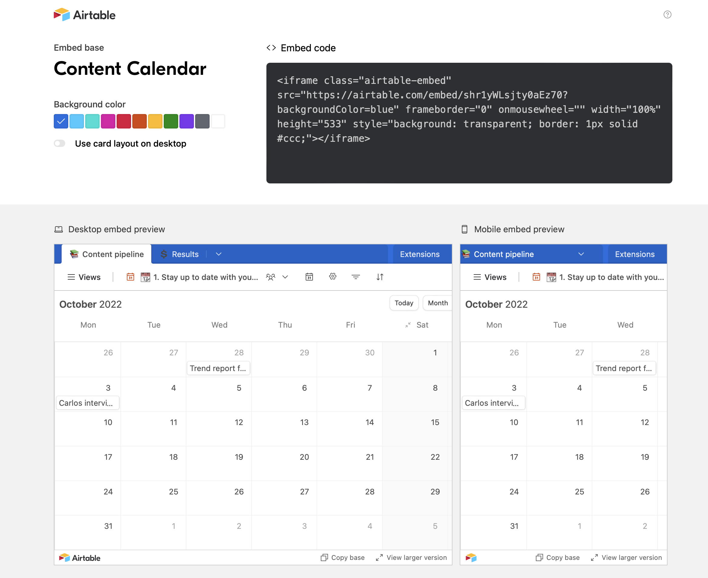 If you use a tool like Airtable, you can embed an editorial calendar inside your Marketing Overview article.
