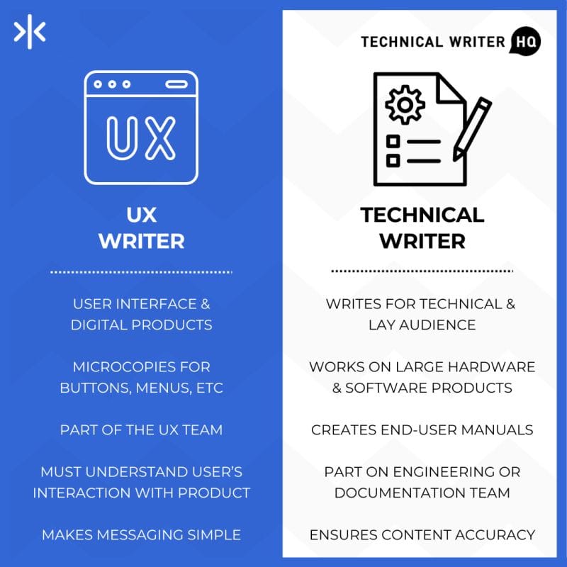 Technical writers and UX writers work closely together, but sometimes they're not in the same role.