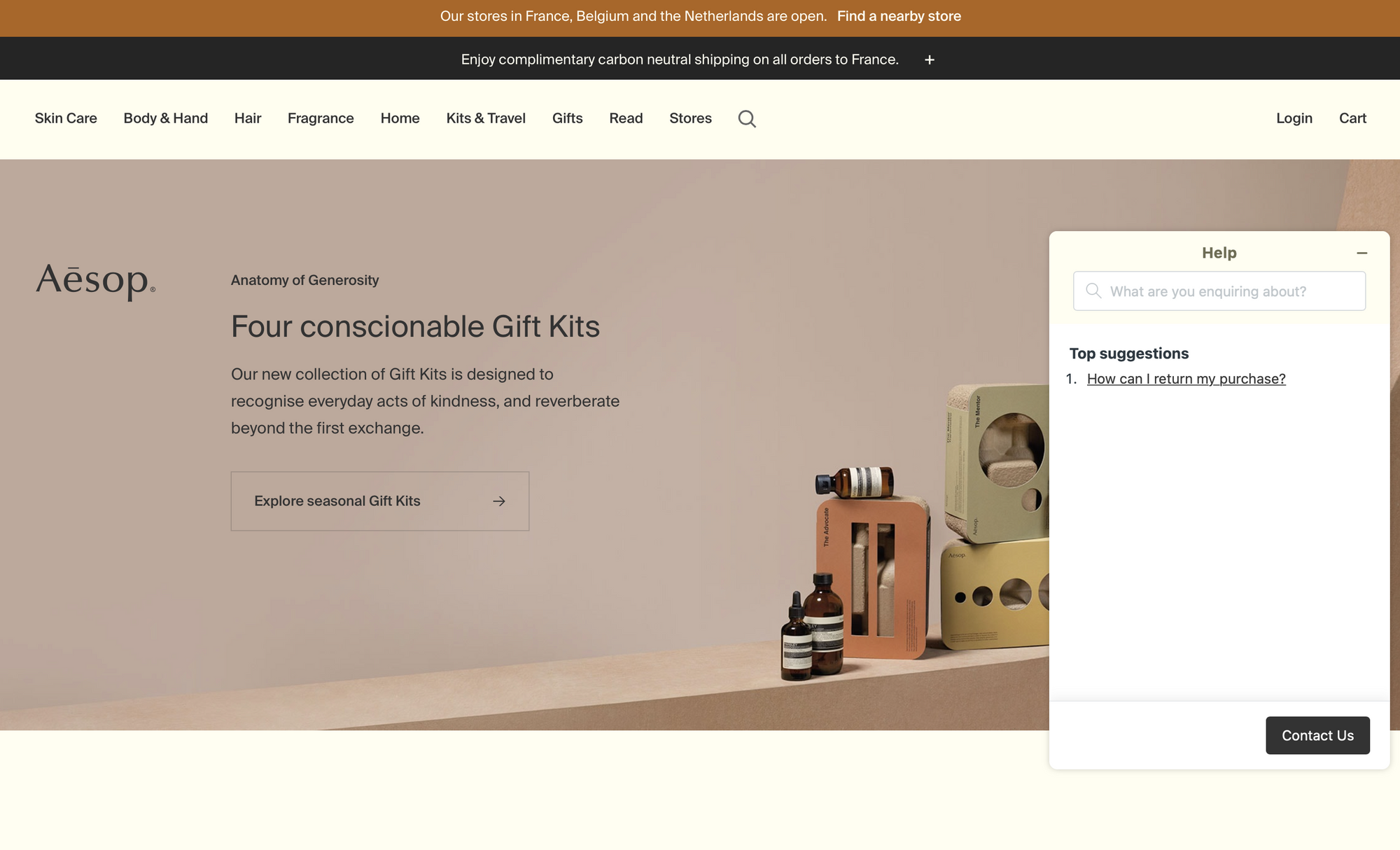 Of course, having a pretty storefront only gets you so far, but having a widget that's obviously there to help shoppers find answers or get in touch is majorly useful.