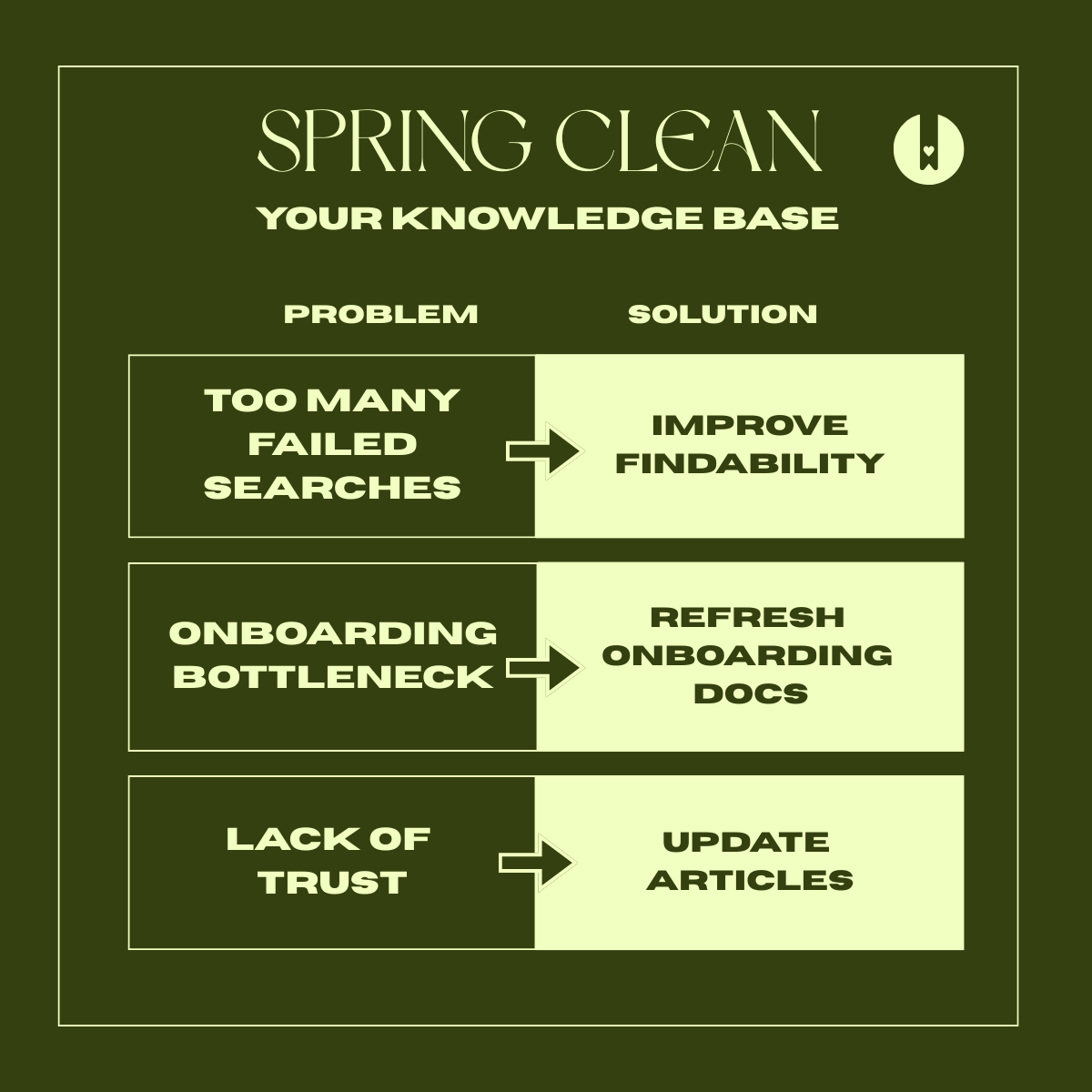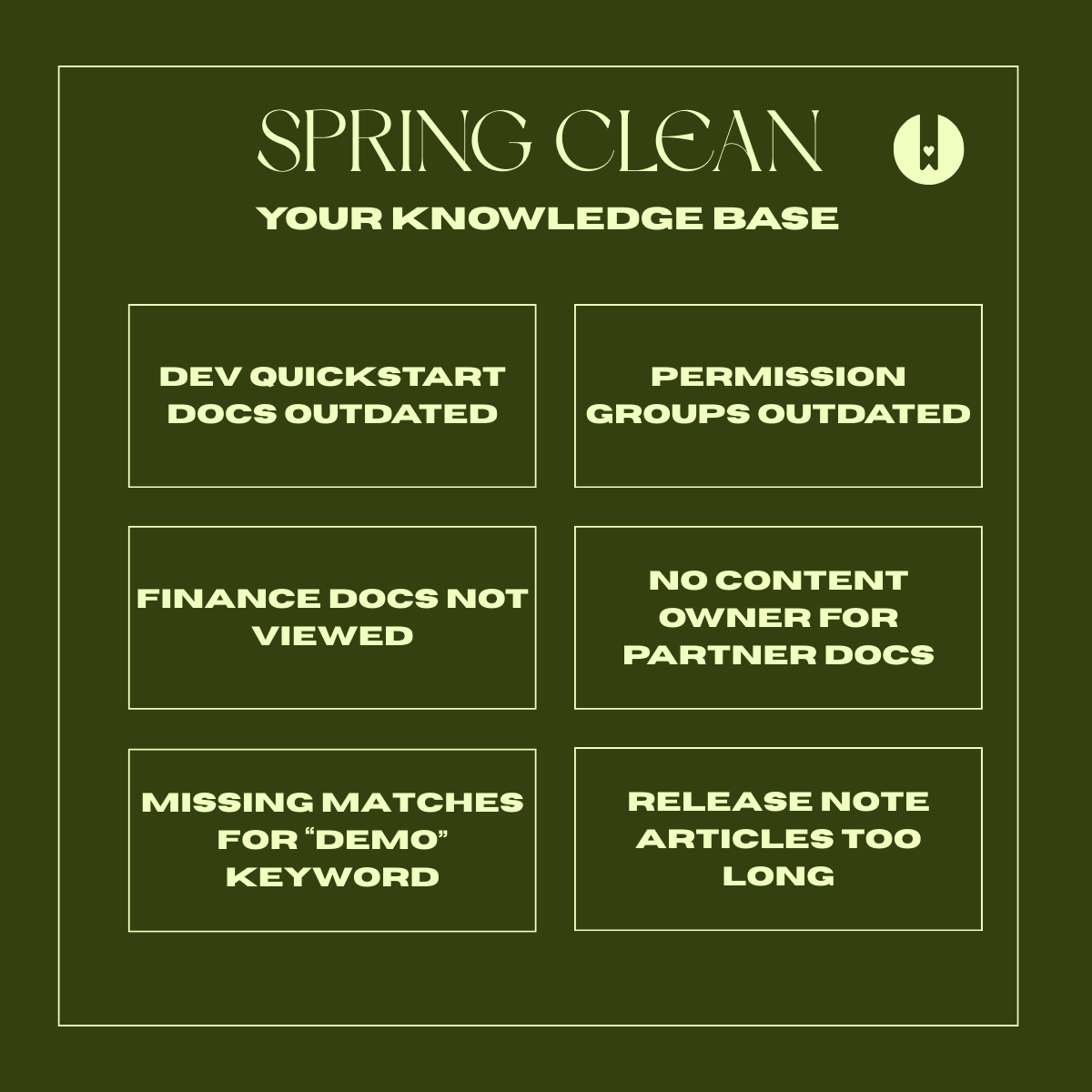 The habits and processes you establish during your spring cleaning will determine whether your knowledge base stays fresh and useful or slowly reverts to its former cluttered state.