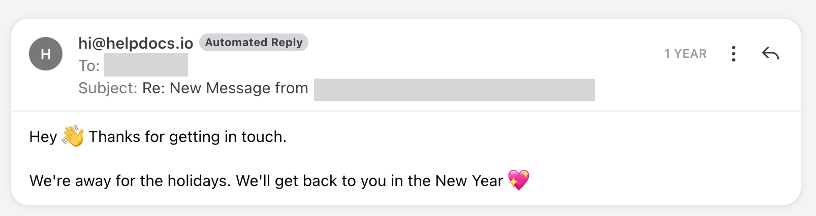 Then I thought about how I'd feel receiving this email. Okay so it was we're away—check. And that we'll reply in the New Year—check.