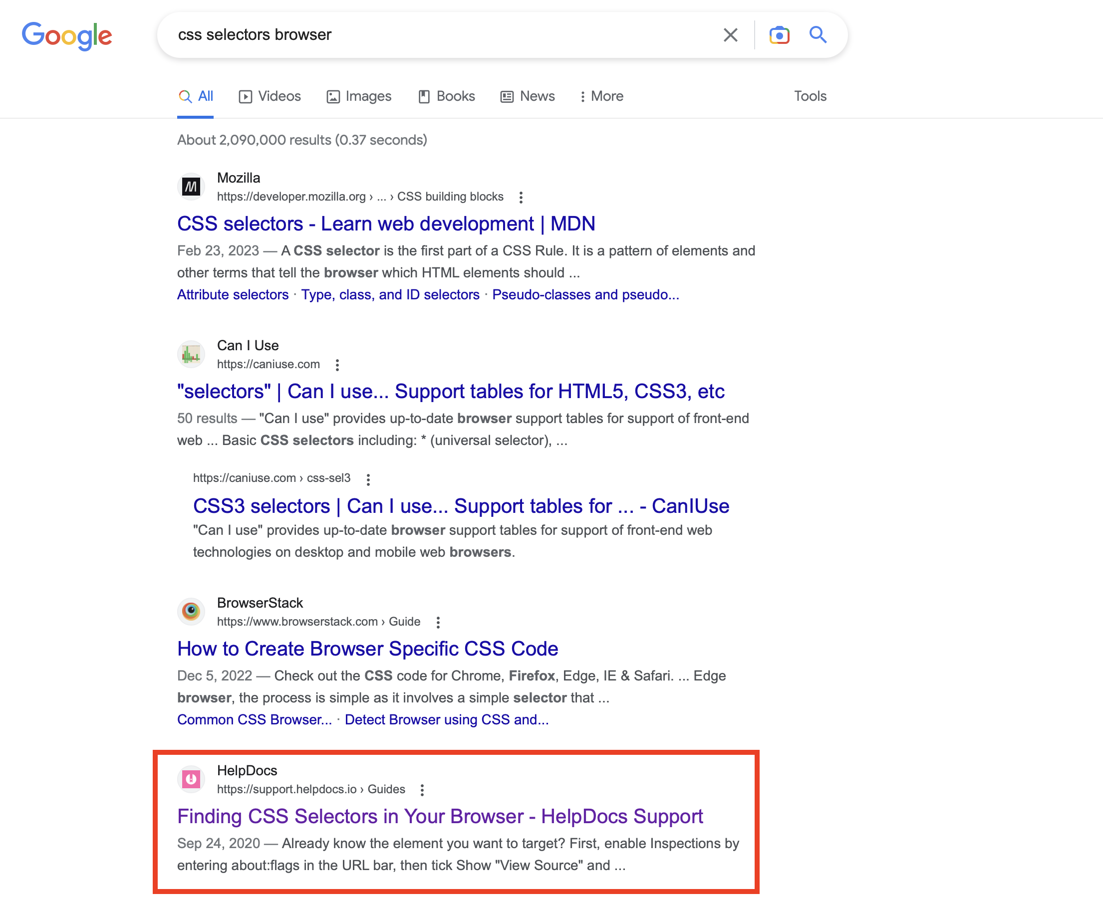 In fact, it tends to come up as one of the top results on Google when searching for "css selectors browser":