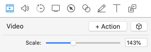 Zooming and panning is the key here. For the GIF above I used zooming to smoothly go in. To do this I head to video tab with the clip selected and press + Action.