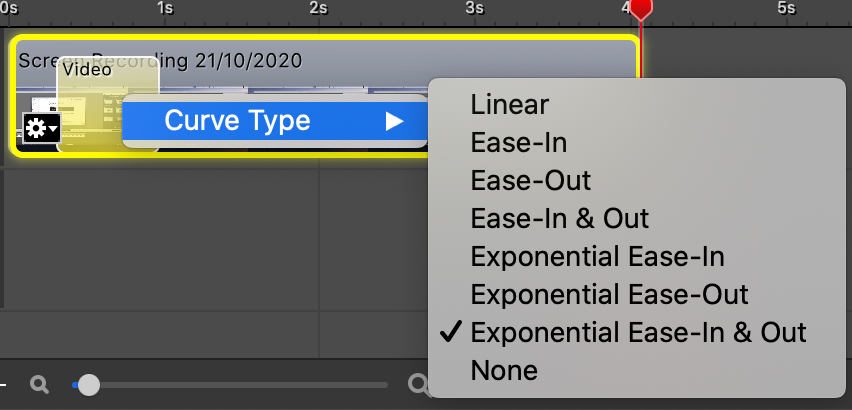A lil' transparent box will appear over the clip named Video. Right click that and you'll find a Curve menu. Hover and you'll see even more options.