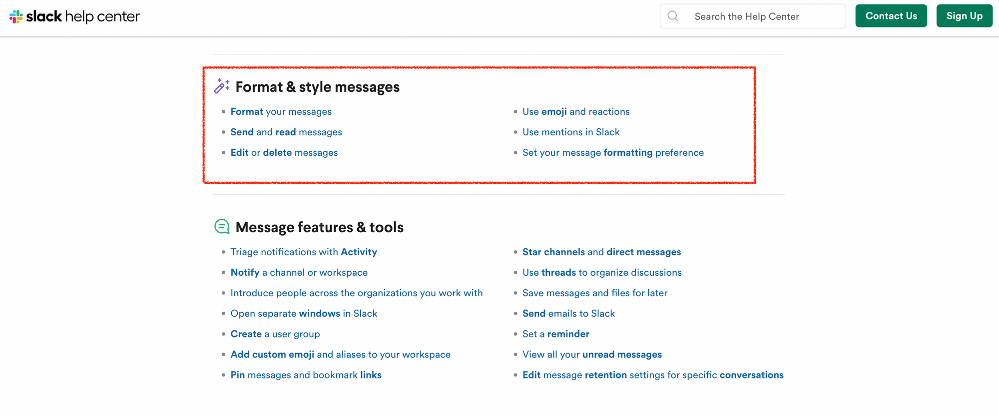 Let's say you're writing an article for the Knowledge Base of an instant messaging program similar to Slack. Rather than writing an article on "How to use messages," target a specific customer need like how to: